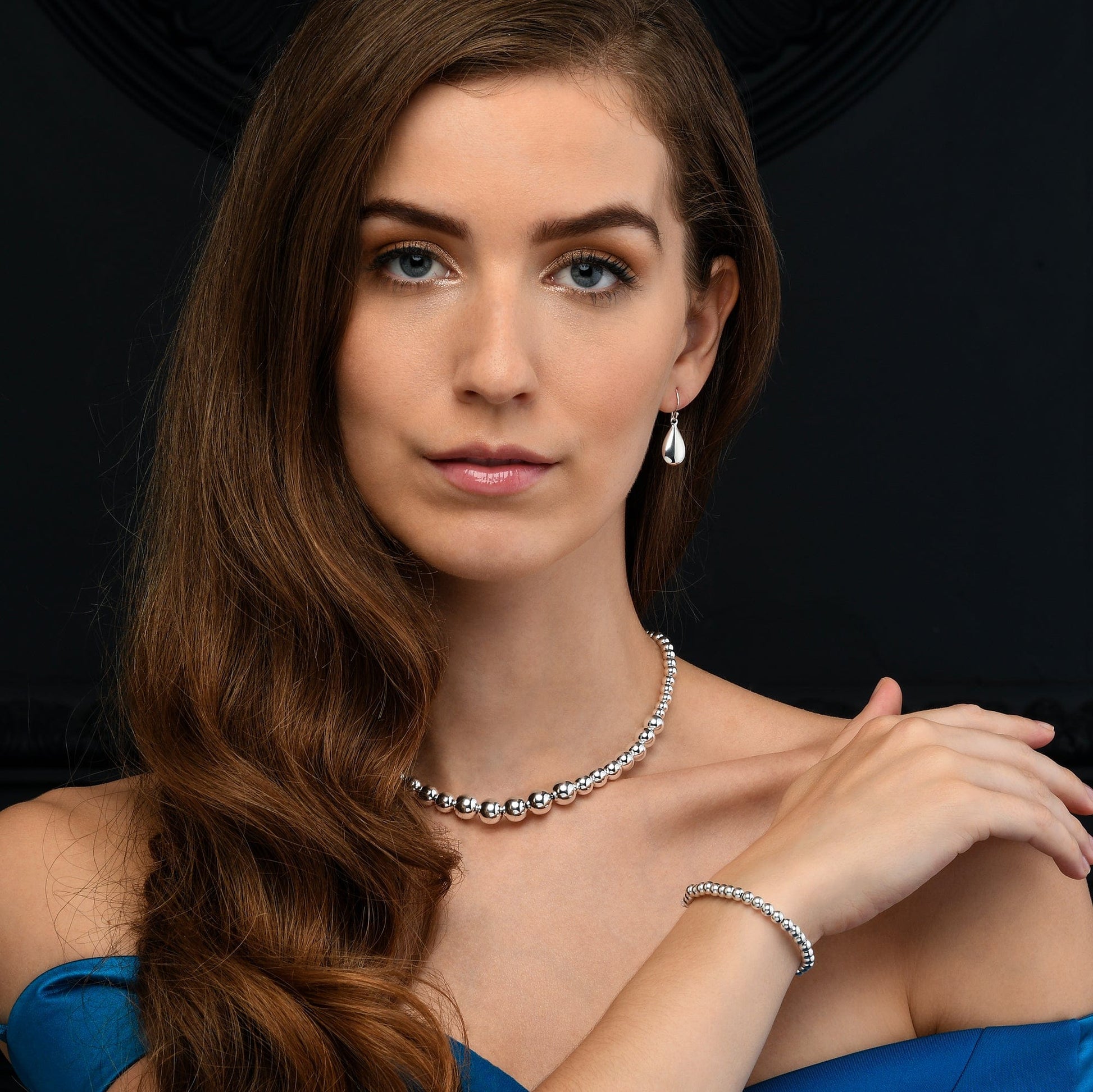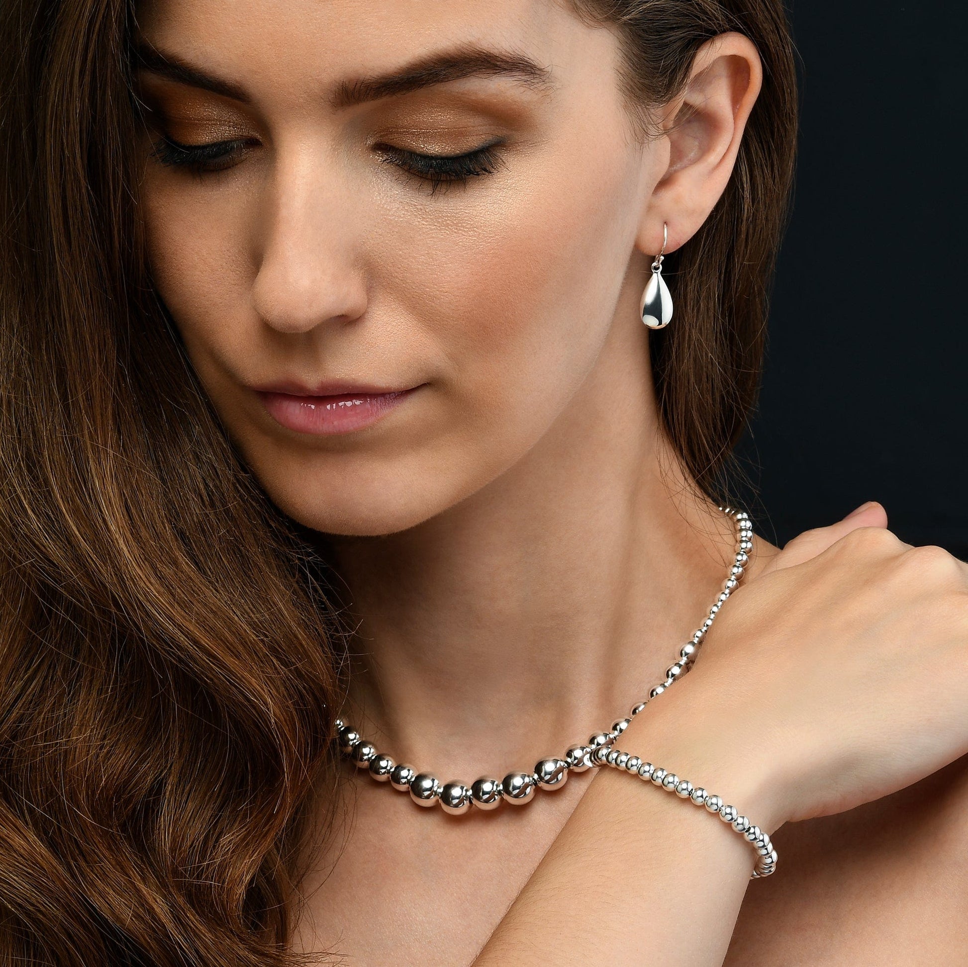 • Silver dangle earrings for teen girls and women in a pear-shaped dangle design.