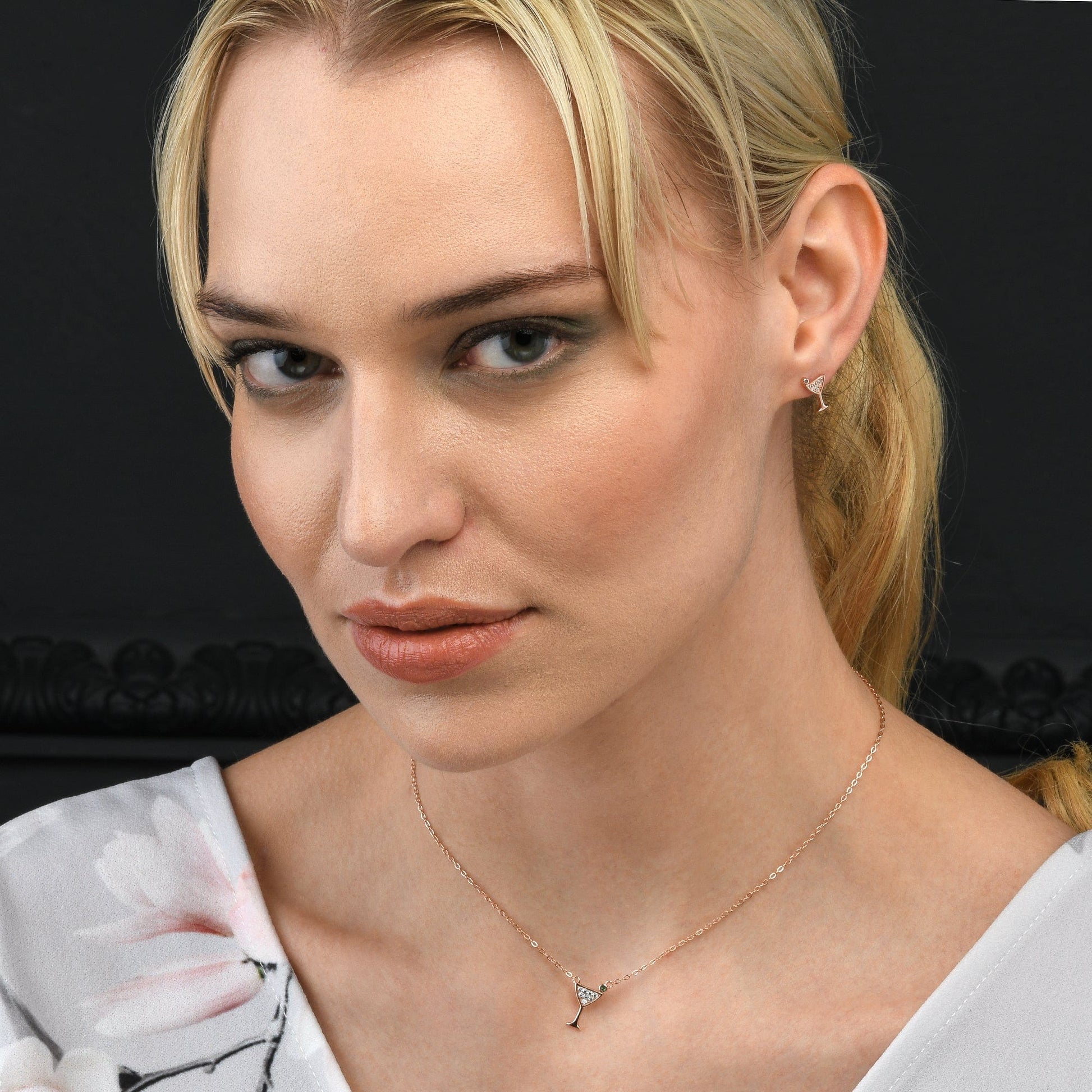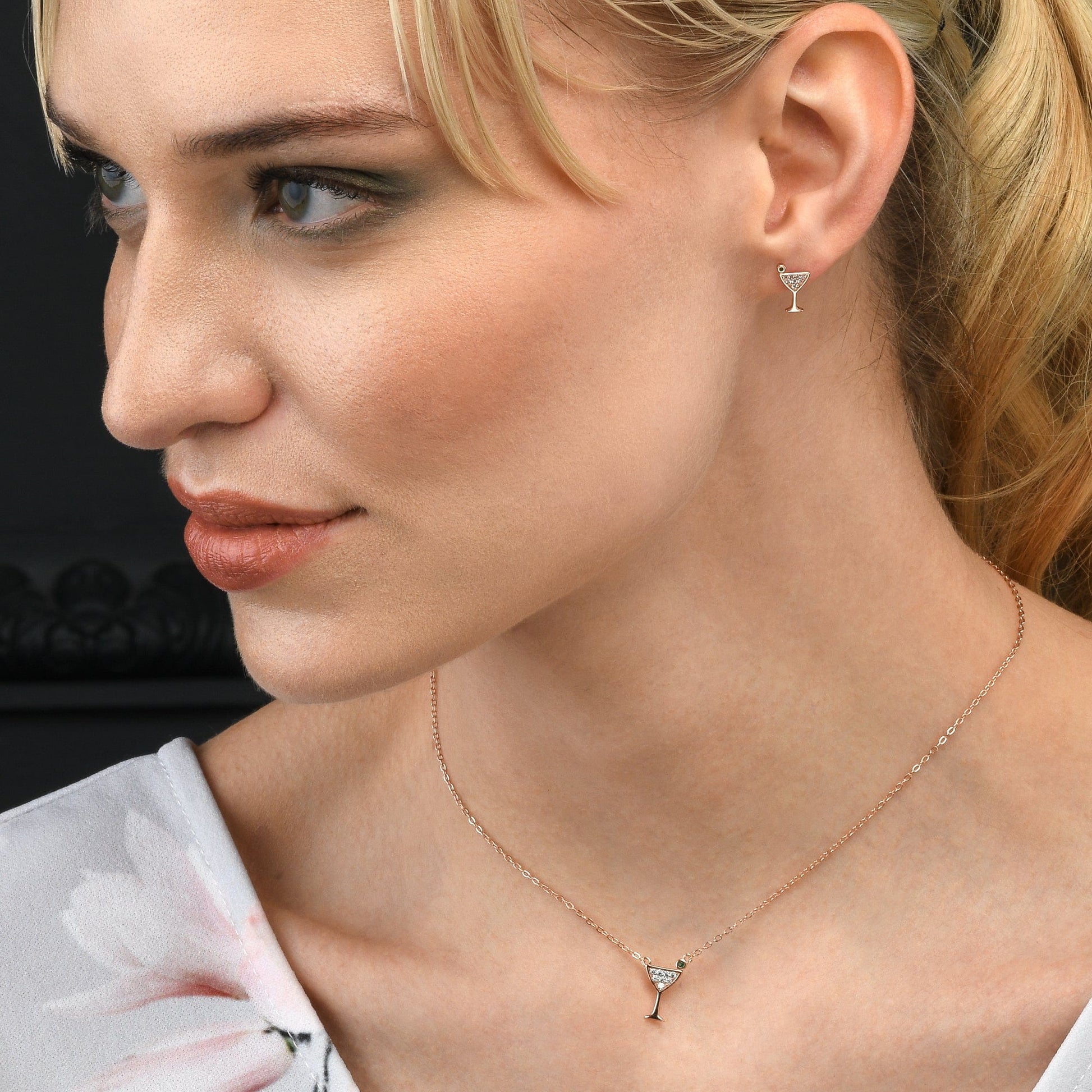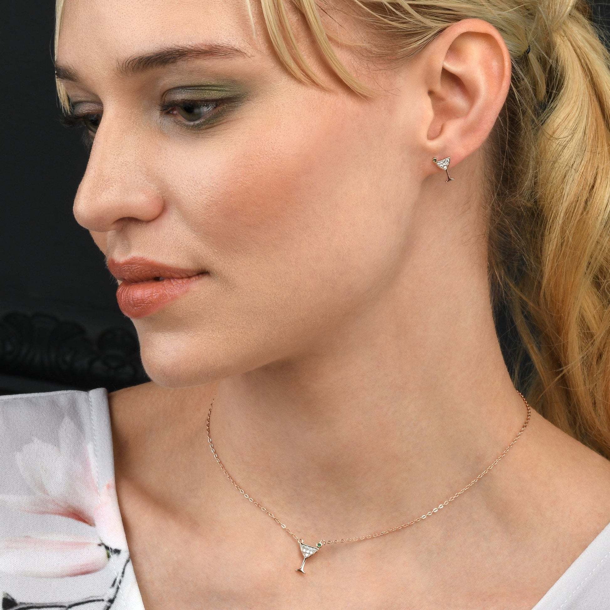 - Cocktail glass rose gold stud Earrings for women with clear AAA cubic zirconia stones