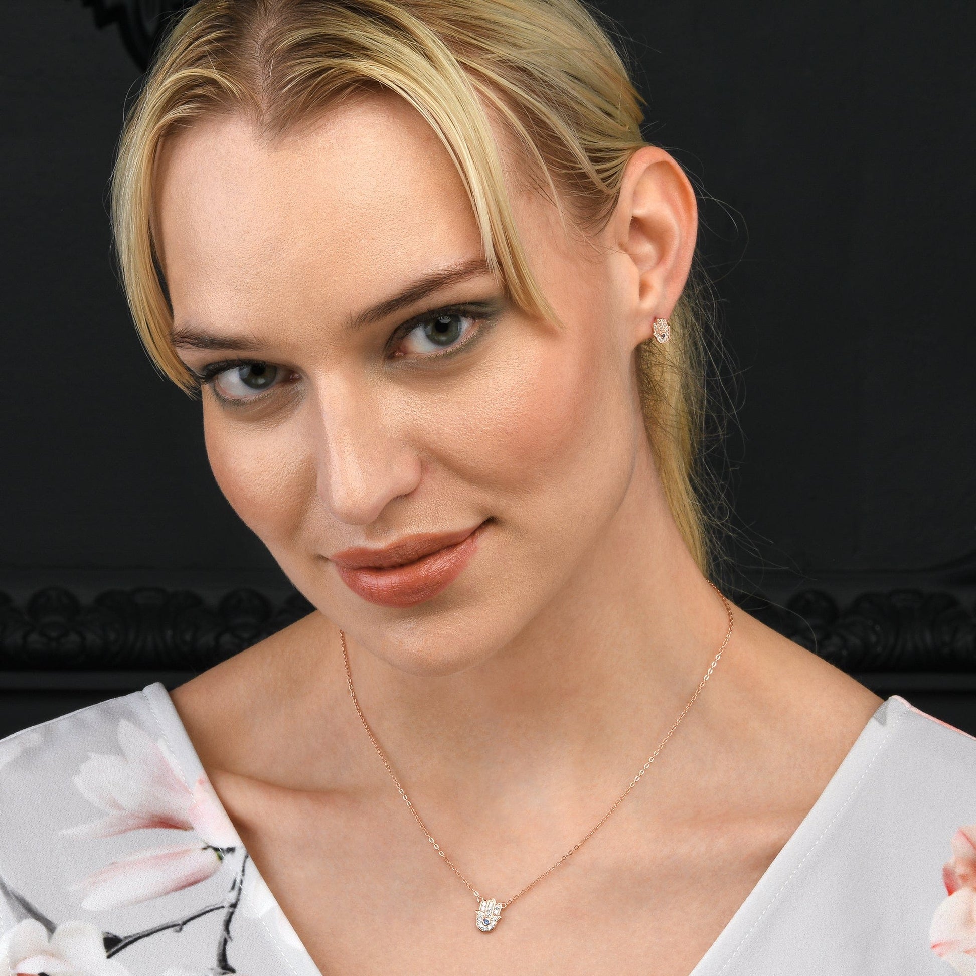 - Rose Gold stud earrings for women with cubic zirconia stones made in 18ct rose gold-plated 925 Sterling Silver