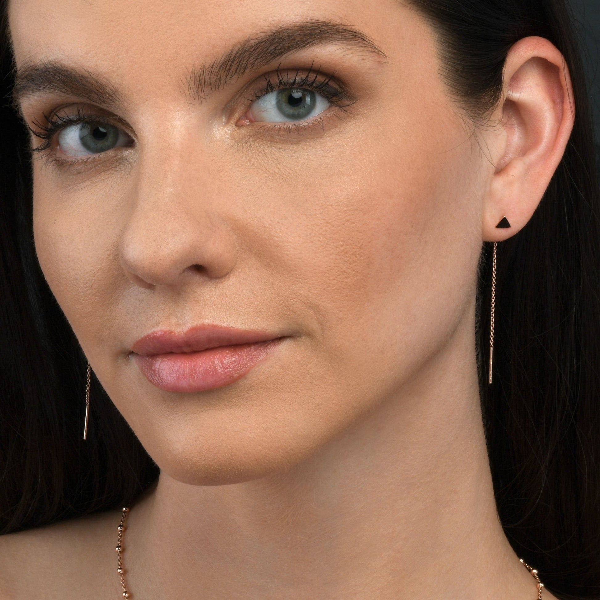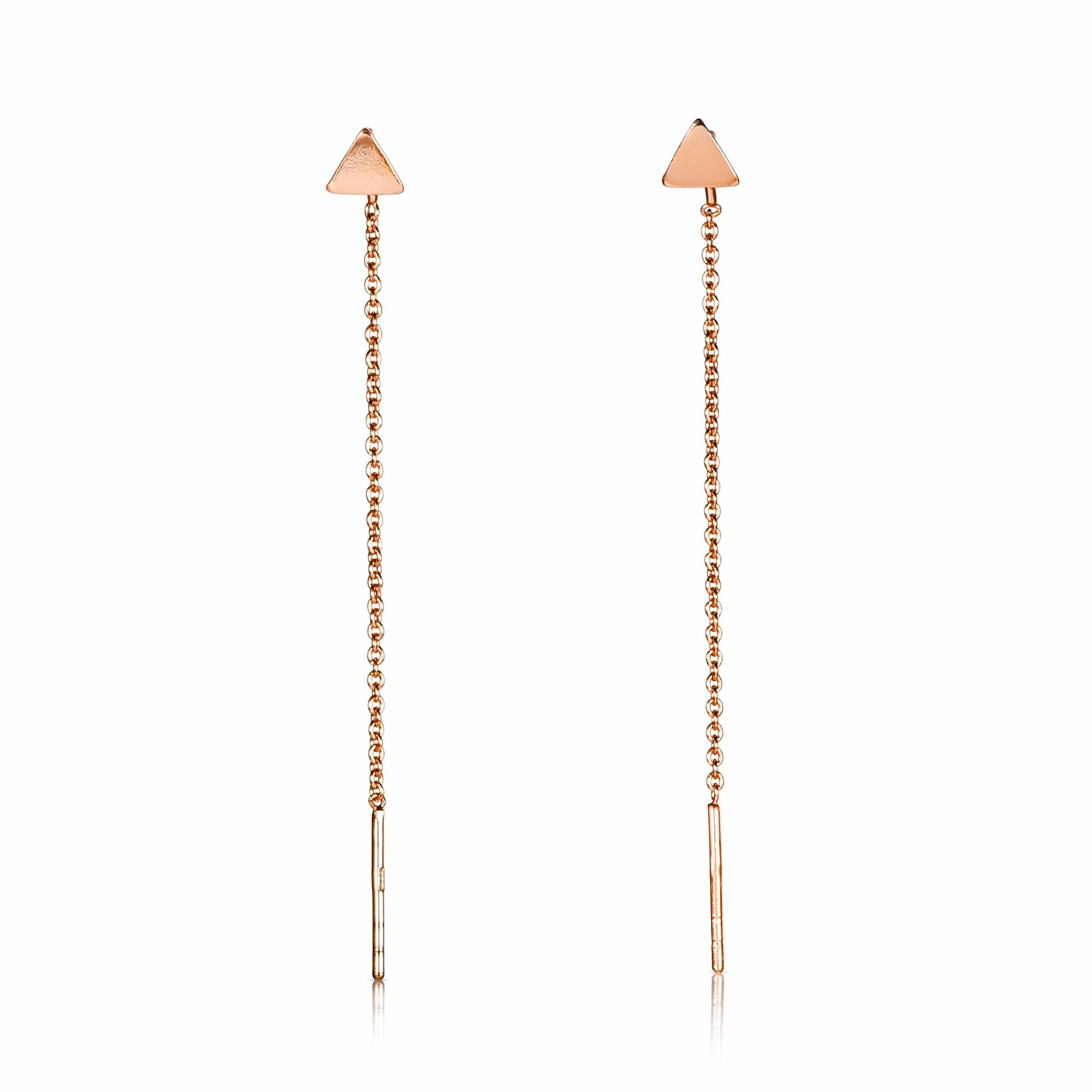 • Cute rose gold chain threader earrings for teen girls and women in a triangle design.
