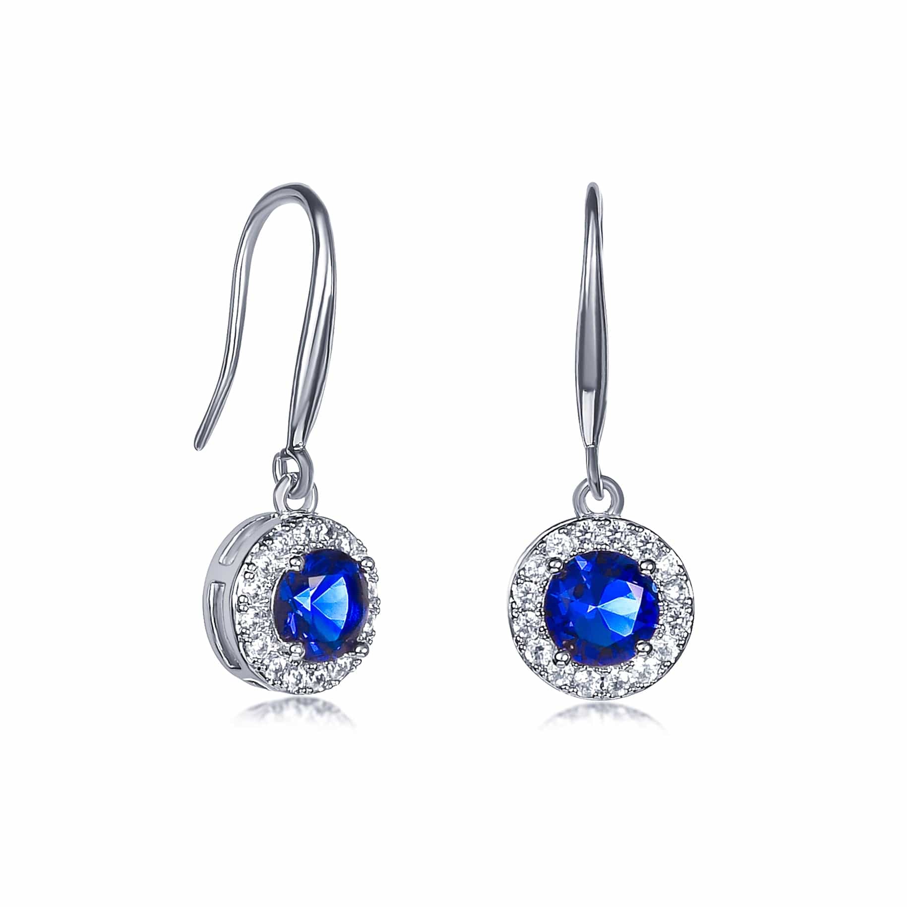 Silver Round Blue Halo Drop Earrings With Cubic Zirconia Stones for women