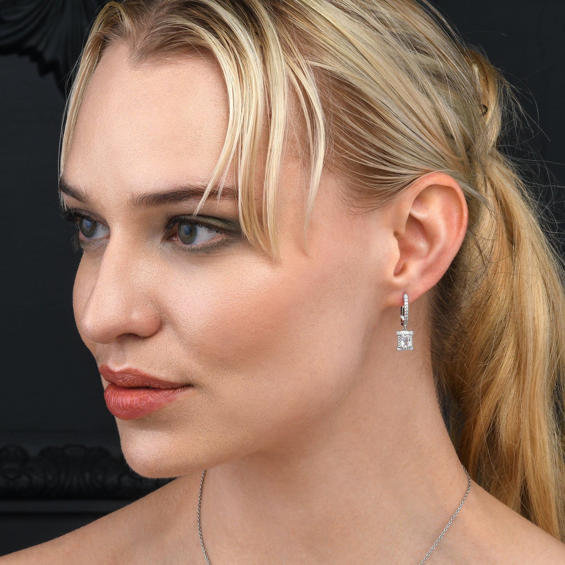 Sterling Silver Emerald Cut Drop Earrings for Women.