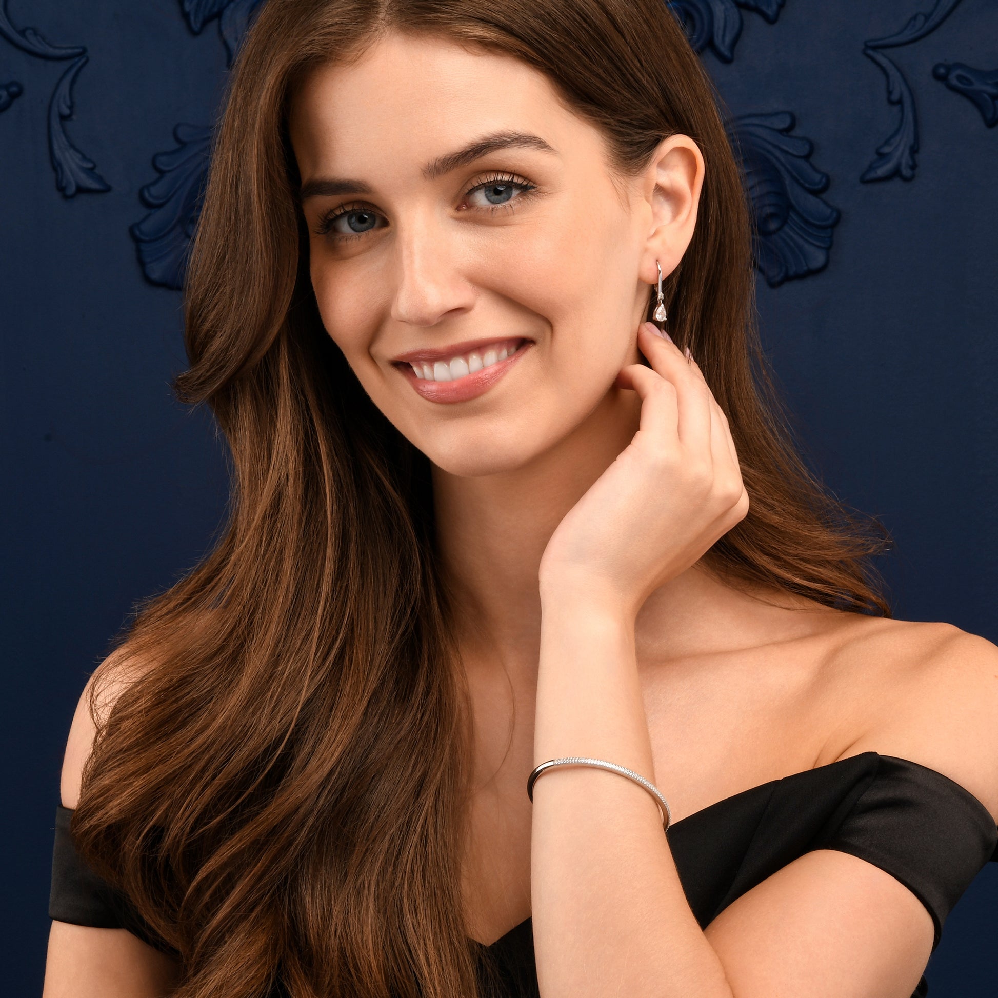 • Silver drop earrings for women made from rhodium-plated 925 Sterling Silver.